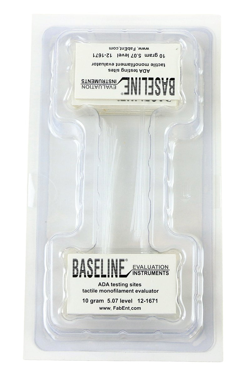 Baseline disposable individual 10 gm. monofilaments. Complete with the ADA program testing protocol. Units bulk-packed in 20-piece blister pack.