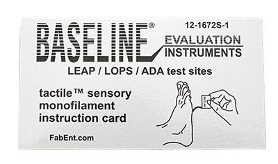 Baseline Tactile Monofilaments are 5.07 disposable monofilaments that each measure 10 grams of pressure. Complete with the ADA, LEAP, and LOPS program testing protocol. Single monofilament comes with a sleeve.
