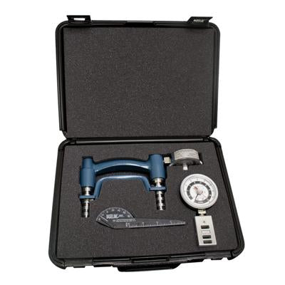 Baseline 3-piece standard hand evaluation set includes the following instruments stored in a protective carrying case: standard 200 pound capacity hydraulic hand dynamometer (blue), standard 50 pound capacity hydraulic pinch gauge (blue), and 6 inch stainless steel finger goniometer. Dynamometer and pinch gauge have a 2 year manufacturer's warranty. CE Certified.