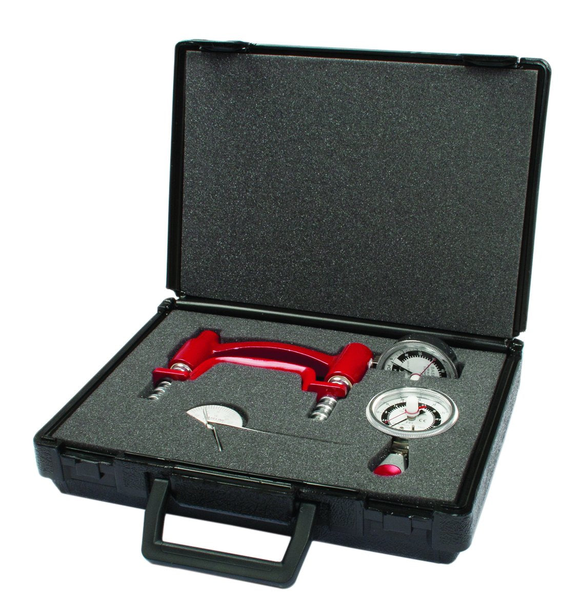 Baseline 3-piece LiTE hand evaluation set includes the following instruments stored in a protective carrying case: LiTE 200 pound capacity hydraulic hand dynamometer (red), LiTE 50 pound capacity hydraulic pinch gauge (red), and 6 inch stainless steel finger goniometer. Dynamometer and pinch gauge have a 1 year manufacturer's warranty. CE Certified.