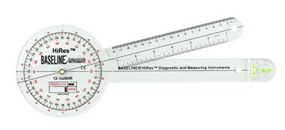 Baseline Plastic Absolute+Axis Goniometer - 360 Degree Head - 12 inch Arms has an integrated Absolute+Axis at the end of one arm. The Absolute+Axis (AA) goniometer establishes a ?true" vertical or horizontal to the start point of a measurement. Many goniometric measurements require one arm of the goniometer to be positioned either horizontally or vertically. The other arm is then lined-up with the patient's body part. Until now, the practitioner had to ?assume" or ?eyeball" the vertical or horizontal position. This interpolation is often incorrect and introduces measurement error. The Absolute+Axis goniometer removes measurement variability and allows the practitioner to concentrate on correct placement of the other goniometer arm and the patient's body position. Some measurements the AA goniometer is designed to improve are: shoulder and hip rotation (internal, external); cervical flexion, extension, rotation and side bending; hamstring flexibility; and active ROM.