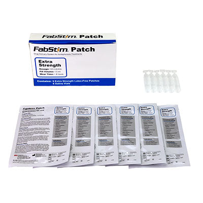 The FabStim Iontophoresis Patch is a great option for clinicians looking to rapidly provide extended pain relief. This easy-to-use, non-invasive technology works by delivering safe and pain-free treatments directly to the affected area without the use of external batteries or wires. The patch makes it easier than ever before to access pain relief by administering controlled electric currents to the treatment site without the need for bulky cables and plugs. Use it to treat most areas of the body, including the elbows, knees, wrists, feet and shoulders. The patch is made from a flexible, breathable material that is comfortable against the skin, making it ideal for extended use. The Extra Strength FabStim Iontophoresis Patch is recommended for patients who want to receive more of the drug per session, allowing for a dosage of up to 120 mA-min to be delivered over an eight-hour period. This kit includes six (6) complete treatments per box. Each treatment includes a patch and a saline vial. Please note, this item can only be purchased by a medical physician or other practitioner that is licensed to use or prescribe this device.