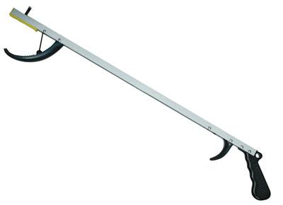 Finger Trigger reaching aides assist individuals with limited reach and hand strength. Units have magnetic tip to help retrieve objects. Drag lug helps position product for easy pick-up. Open jaw closes when trigger is squeezed.