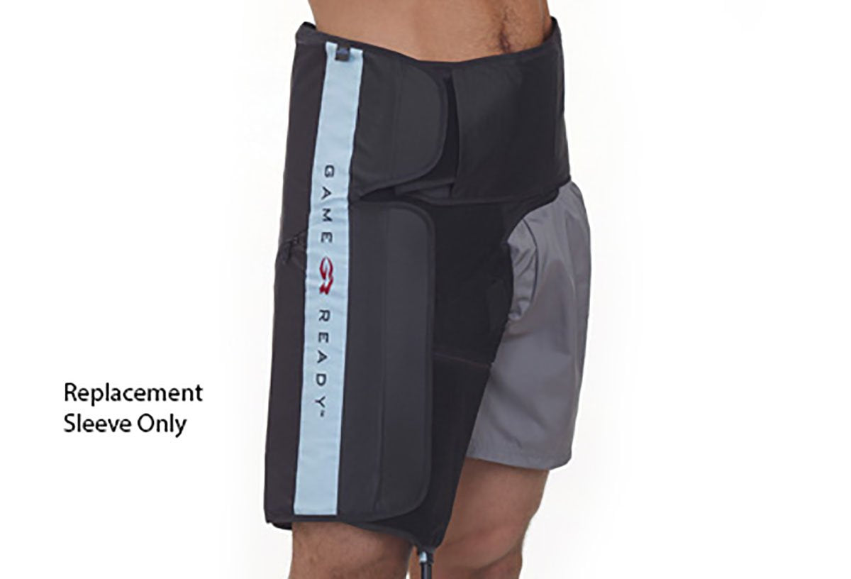 The Game Ready Hip/Groin Left Replacement Sleeve is specially designed to form-fit over the Hip/Groin Left wrap. This machine washable sleeve provides a barrier between the wrap and skin and features zippered openings with Velcro closures. It is meant as a replacement sleeve for sleeves that are tarnished and does not feature the exchange of cold compression.