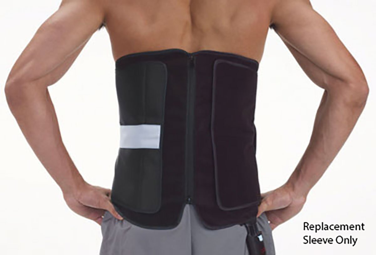 The Game Ready Back Replacement Sleeve is specially designed to form-fit over the Back wrap. This machine washable sleeve provides a barrier between the wrap and skin and features zippered openings with Velcro closures. It is meant as a replacement sleeve for sleeves that are tarnished and does not feature the exchange of cold compression.