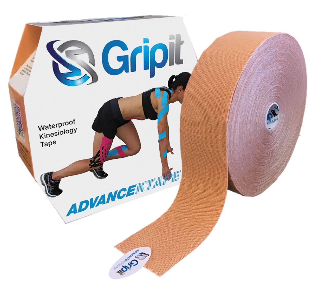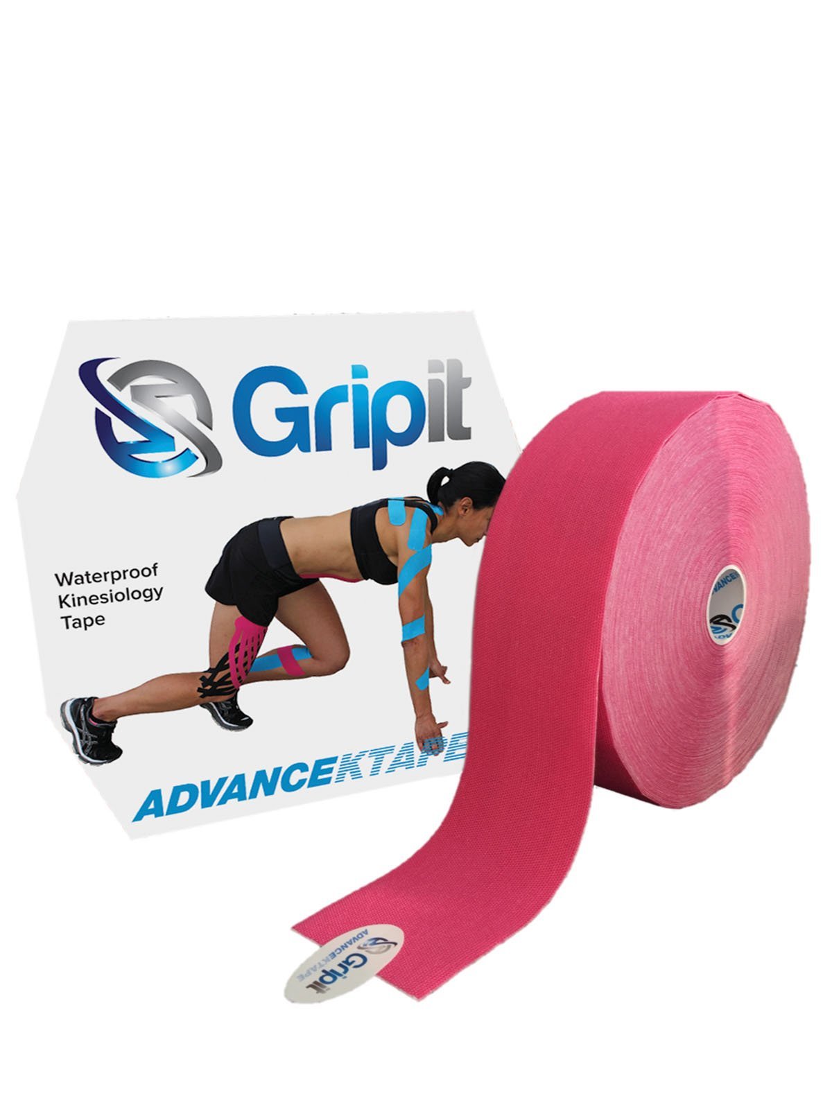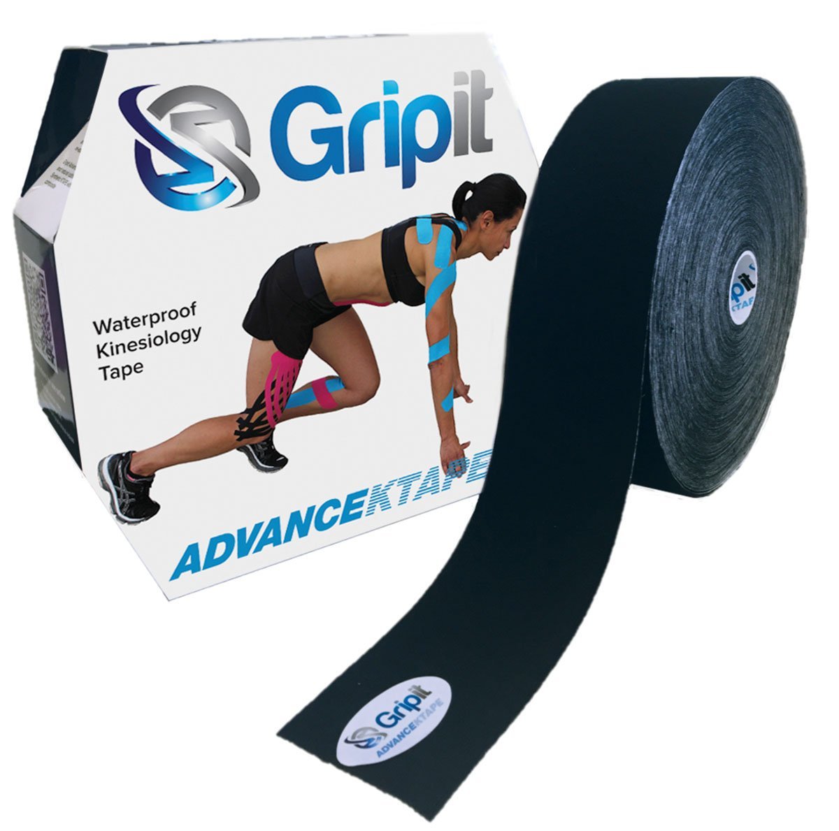 Gripit Advance KTAPE is made of a shiny synthetic waterproof material and the highest grade Japanese adhesive that is best suited for wet and muddy conditions such as water sports, endurance sports and obstacle racing. It is designed to work with the skin and fascia to assist in many key roles including: a decrease in pain and soreness, assisting in the movement of fluid and toxins via the lymphatic system, assisting in healing, proprioceptive feedback and support. It features a viscose synthetic fabric, more adhesive material, and a 180% stretchiness with a 2 way stretch. It also features a low risk of allergic reaction because it does not contain latex or zinc oxide and can last up to 7 days. It measures 2 inches x 34 yards.