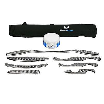 The most popular HawkGrips set, the Gold set has everything needed for standard practice. Includes the Medium Handlebar, all six small instruments, one jar of regular emollient, and a User Manual.