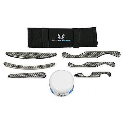 The Silver set includes all six of the small HawkGrips instruments, a roll-up carrying case, one jar of regular emolllient, and a User Manual.