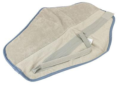 To prevent burning, all moist heat packs must be applied with either a hot pack cover or heavy towel completely wrapped around the pack. The terry cloth hot pack cover allows therapeutic moist heat to penetrate without burning the skin. Hook and loop fasteners keep moist heat packs in place. Covers are machine washable and can be used again and again.