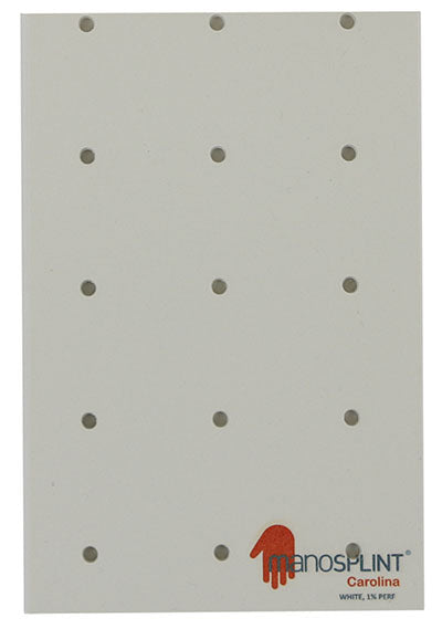 Manosplint Ohio material is a coated material that will not adhere to itself until the coating is removed. Ohio becomes translucent when it is heated, allowing the therapist to clearly see target areas and minimize patient discomfort. The perforated surface allows for air circulation with sacrificing rigidity. Ohio is available with 1%, 11%, 15%, 19%, 36%, and 42% surface perforation.