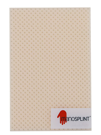Manosplint Ohio S material is a non-coated material that self-bonds, acting as a second pair of hands to keep the device in place during application. Ohio S becomes translucent when it is heated, allowing the therapist to clearly see target areas and minimize patient discomfort. The perforated surface allows for air circulation without sacrificing rigidity. Ohio S is available with 11%, 15%, and 19% surface perforation.