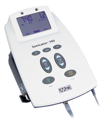 The Sonicator 740 is 1 and 3 MHz therapeutic ultrasound unit that comes with a 5 cm_ dual frequency applicator. It is light-weight and portable and features a universal applicator cable to make changing applicators quick and easy.