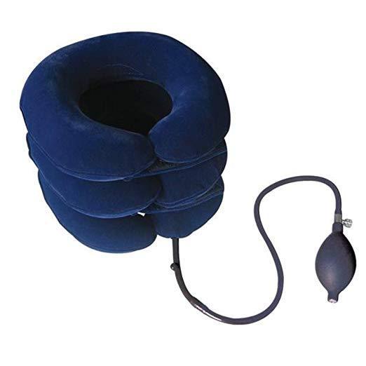 Provides adjustable traction therapy. Inflates slowly with air to provide a gentle stretch. Helps alleviated pressure on tight muscles, pinched nerves, neck discomfort, tension headaches and more. Soft velour cover with adjustable velcro tabs. One size fits most (17-24" neck size). 8.5" W x 2" D