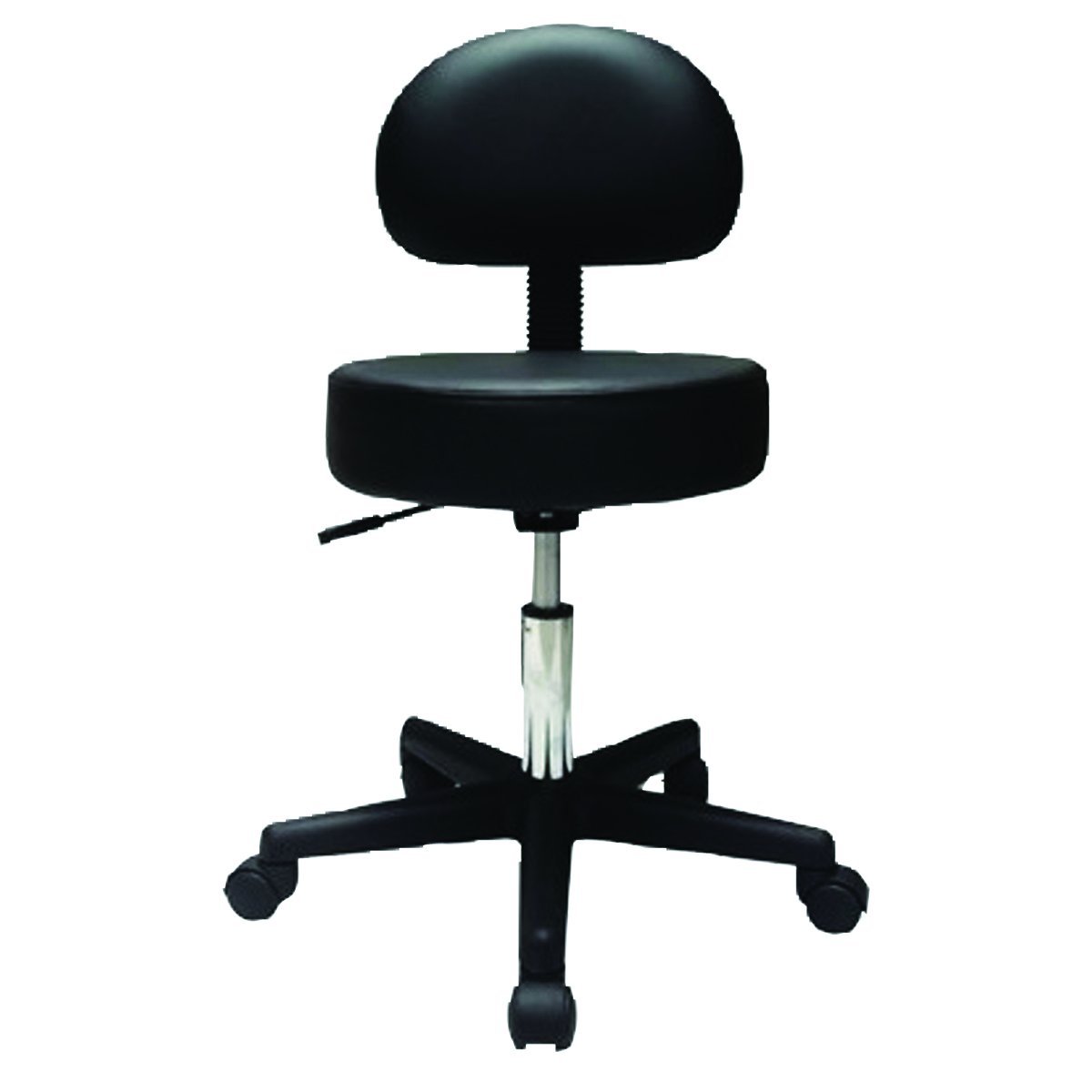 Pneumatic mobile stool, with back, 18" - 22" H, black upholstery