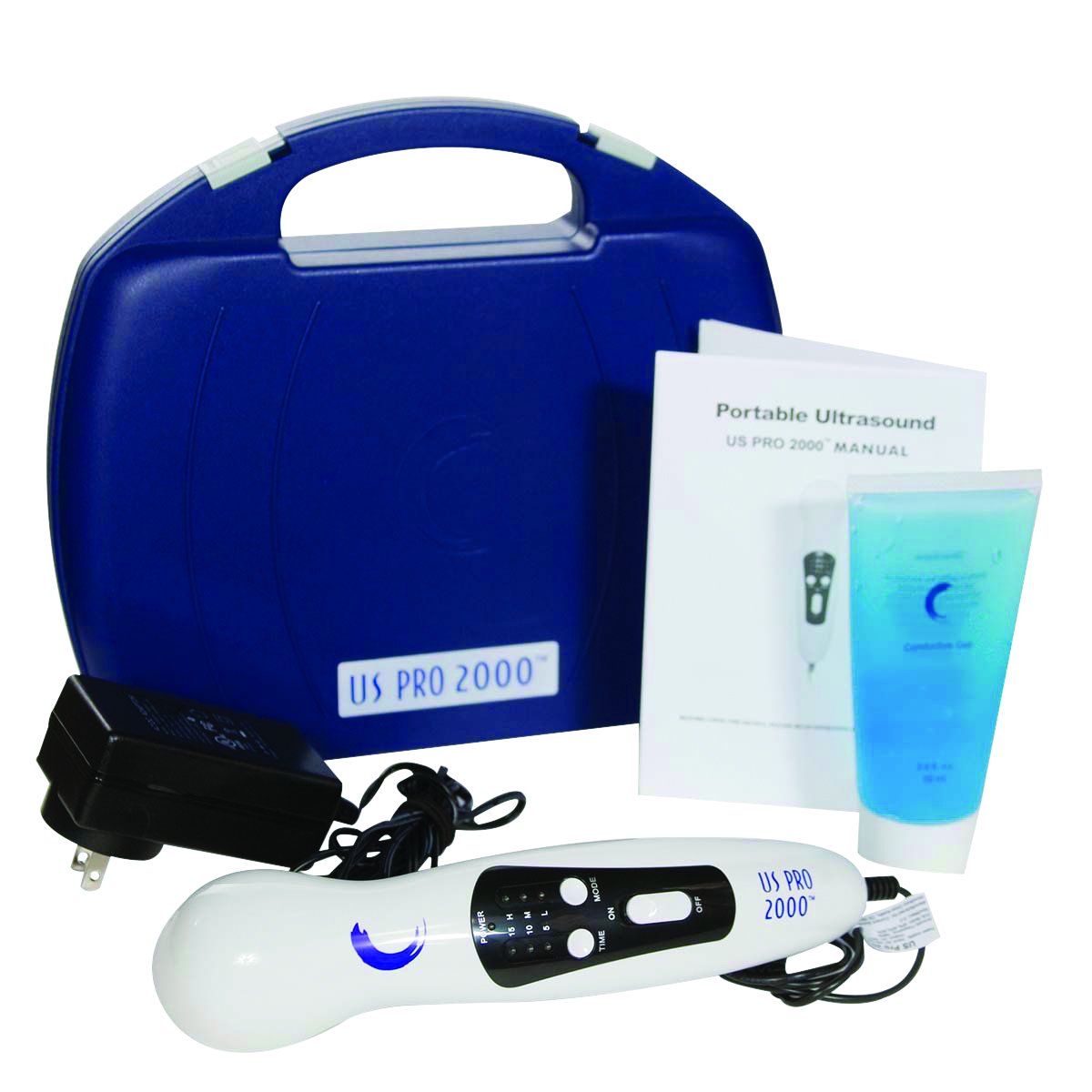 The US Pro 2000 offers professional strength 1 MHz ultrasound in a portable package. The device is strong and durable with three intensity settings. Complete with carrying case, ultrasound gel and AC adaptor. Perfect for use in the clinical or home care environment. Therapeutic ultrasound device that generates deep heat to effected area. Device must be used with ultrasound gel to conduct the wave energy to the skin. Three intensity settings - low/medium/high. Output Frequency: 1.0 MHz. Temporal Maximum Power: 9.6 W, 1.2 w/cm2 on high setting. Output Intensity: Low 0.8 w/cm2, Medium 1 w/cm2 and High 1.2 w/cm2. Duty Cycle: Low 30%, Medium 40%, High 50%. Output Mode: Pulse. Timer Setting: 5, 10 and 15 minutes.