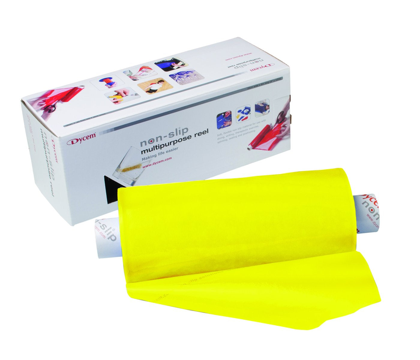 Original Dycem anti-slip material is 0.4mm thick. It is non-slip on both sides and flexible. Flexibility allows it to flex and fit around object. Easily cut piece from reel. Material can be used for a variety of applications: For gait re-education and balance activities; Can be used under hands, feet and knees; To stabilize equipment or limbs in weight bearing exercises; Under plates for eating and dining; Beneath people's feet and on seats to help improve positioning and posture when standing or sitting. Material is reusable and easy to clean. Latex free.
