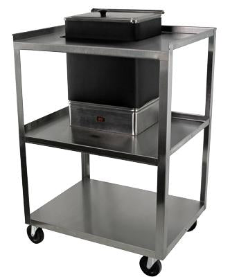 Utility cart designed to fit the Hydrocollator E-1 unit.