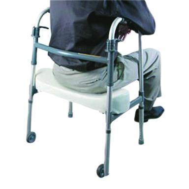 Comfortable, fold-down padded seat. Two inch foam padded vinyl cover cleans easily. Two hook and loop fasteners straps secure the seat to the uprights or horizontal rails.