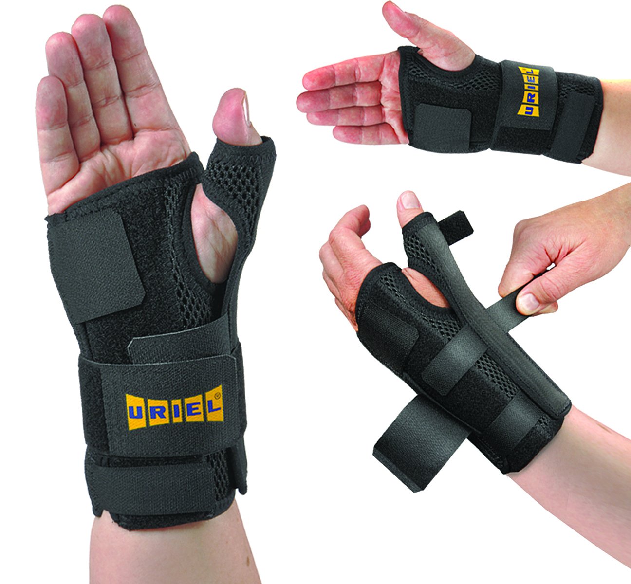 The wrist & thumb splint is designed with an inner aluminum rod to hold the wrist in a functional position at an angle of 35° (Optional adjusting). This device restricts the movement of the thumb and provides support to the wrist. Useful for the treatment of sprained or strained wrists and thumbs and for local inflammation. It has an adjustable thumb strap and fits either hand. Made of Neoprene and breathable spacer fabric. With velcro fastener for optimal fitting.